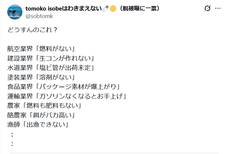 イラン戦争によって、状況は、どんどん悪化してるようです。
