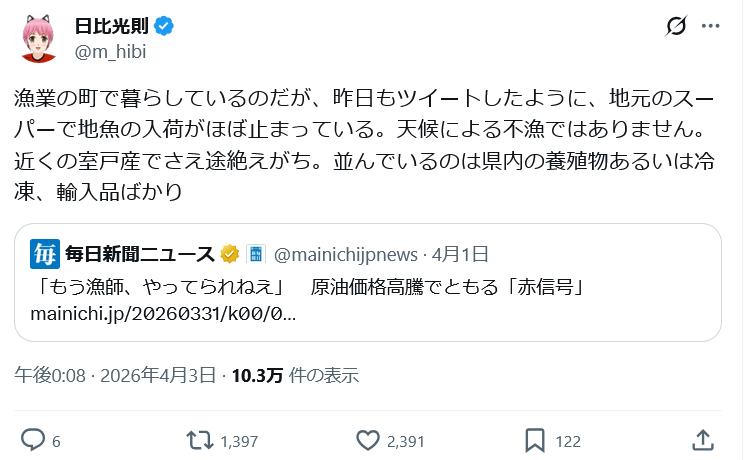 漁業や畜産でも船舶の燃料代や飼料の輸送代が上がり始め、今後多くの食材が値上げや供給不足に直面しそうだ。