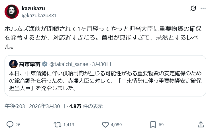 https://www.sankei.com/article/20260403-RQJ3RTW3KVNMVJR74ZVUTGH3BI
