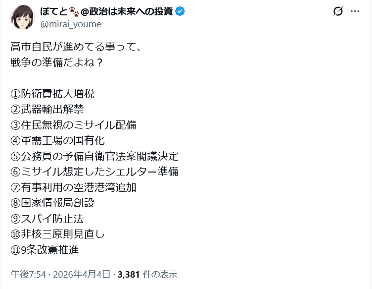高市政権を支持する宗教右翼や思想右翼を喜ばせることに注力している