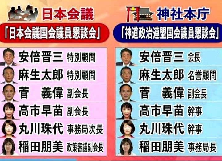 (注:日本会議は、生長の家出身者のほか神社本庁、霊友会、佛所護念会、キリストの幕屋など様々な右翼系宗教団体が関係している組織)